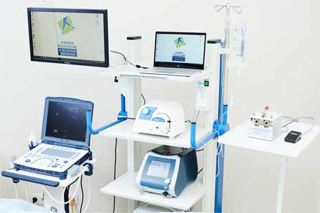 Рис.1 Оборудование при проведении процедуры Эндовенозной лазерной коагуляции (ЭВЛК)