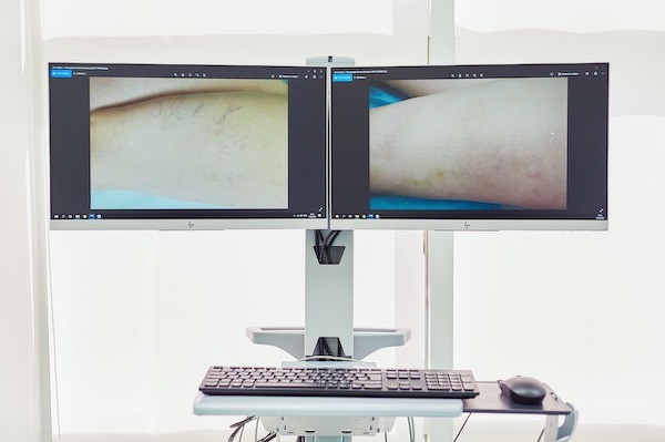 На первом этапе сосудистая сетка на поверхности кожи подвергается воздействию лазером. С помощью аппарата VeinViewer в режиме реального времени на кожу проецируются питающие (ретикулярные) вены. Таким образом, врач четко видит реальное расположение вен на поверхности кожи, что в свою очередь позволяет