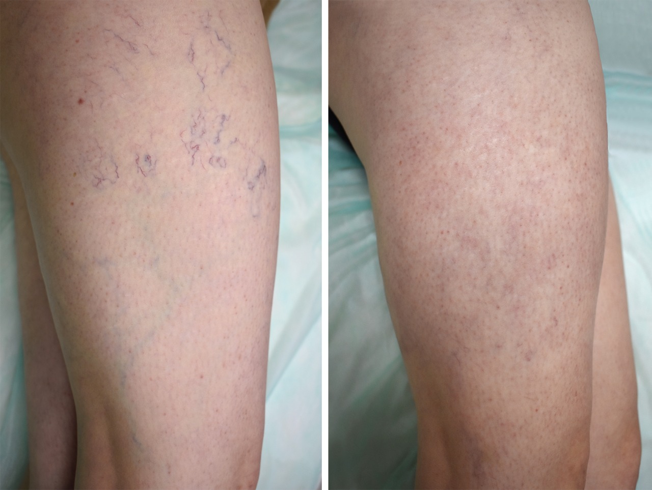 Процедура длится, как правило, от 30 до 60 минут. Эффект развивается постепенно, поэтому между сеансами необходимо выдерживать паузу (примерно месяц). Для достижения лучшего результата часто требуется две или три процедуры. Эффект определяется выраженностью сосудистого рисунка на ногах конкретного пациента, но в