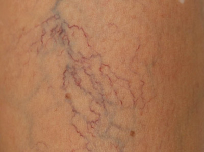 Бывает также расширение самых маленьких, внутрикожных вен, которые еще называют “сосудистыми звездочками” (Рисунок 4). Это отдельное заболевание, о котором мы рассказываем в соответствующем разделе сайта.